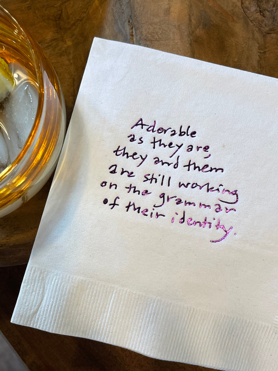 Shop nowLove notes among frenemies. A bit untoward, even mildly vicious, these napkins do the talking while the friendship keeps on walking. White Claw anyone?